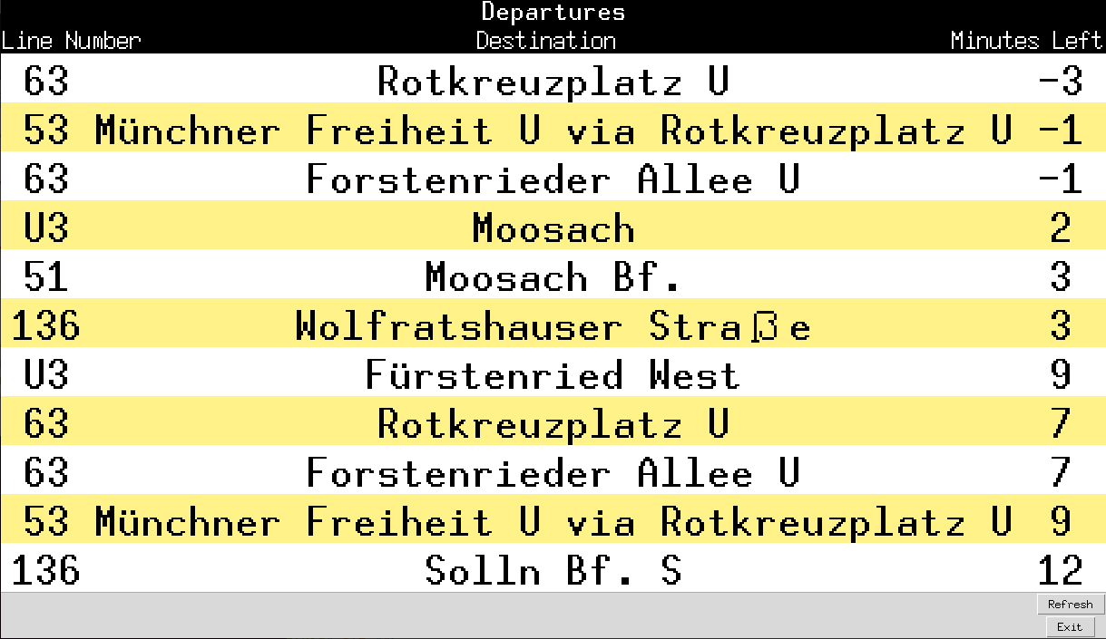 A dashboard that shows upcoming departures for a given station from Munich's Public Transport API.